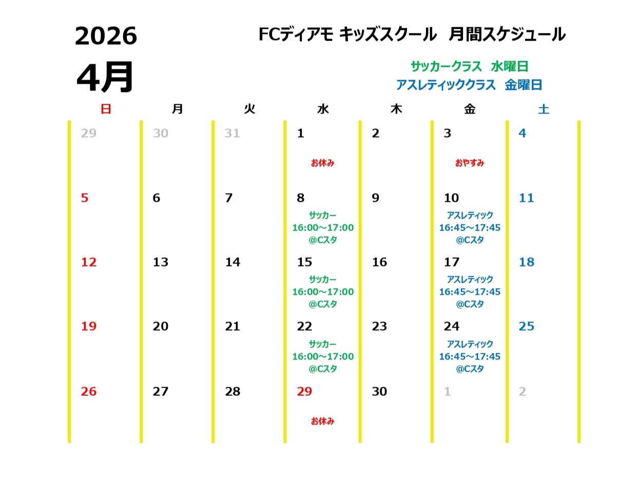 FCディアモキッズスクールには2つのクラスがあり、体験・見学は随時募集しています!